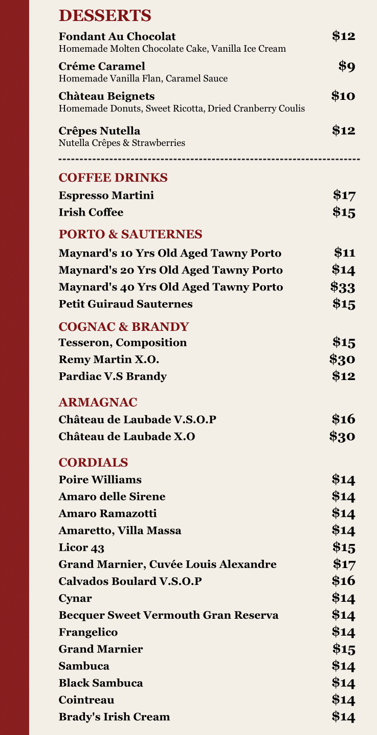 Desserts & after dinner drinks